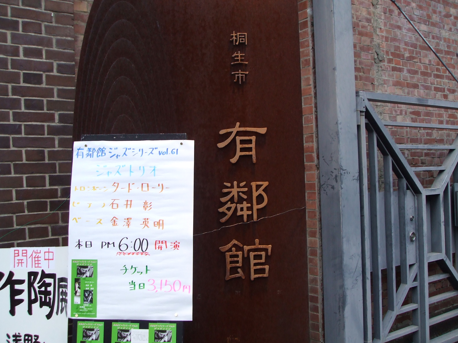 今日のメンバーは桐生在住のトロンボーン奏者のタッド.ローリーさんにベースは金澤英明。日曜日で渋滞がひどくて運転が疲れたが、本番前にとても美味しい鰻を食べエネルギー補給は万全!?