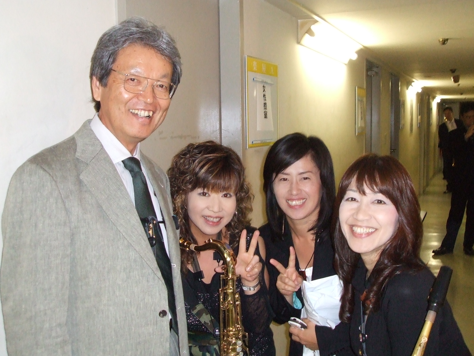 写真は赤松先生と教え子のサックス美女軍団!!