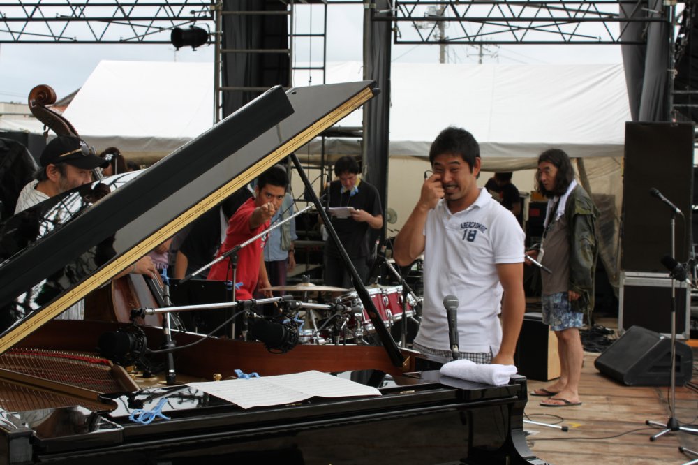 ツアー終了! 2009年7月30日 | その他 雨は降りそうで降らないし、いらん時に降るもんですな。 境港「妖怪ジャズフェスティバル」は今年も降られずにめでたく終了。矢野沙織バンド、寺井尚子カルテット、Fride pride、日野皓正クインテット。熱いステージを繰り広げ、長いツアーも無事終わり。 毎年の事だが、感無量な気持ちになるのでした。。。。。 写真はステージ上でサウンドチェックの様子。